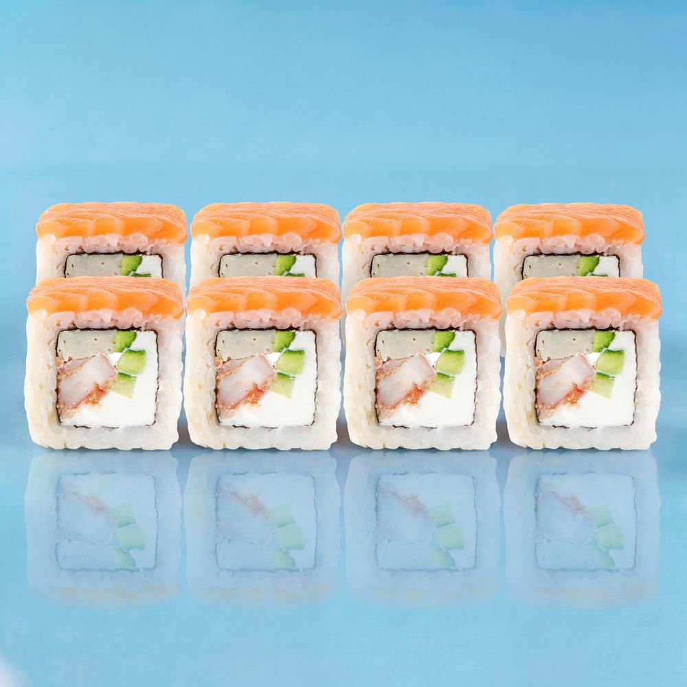 Лосось, рис, нори, сливочный сыр, огурец, тамаго, окунь, в кляре