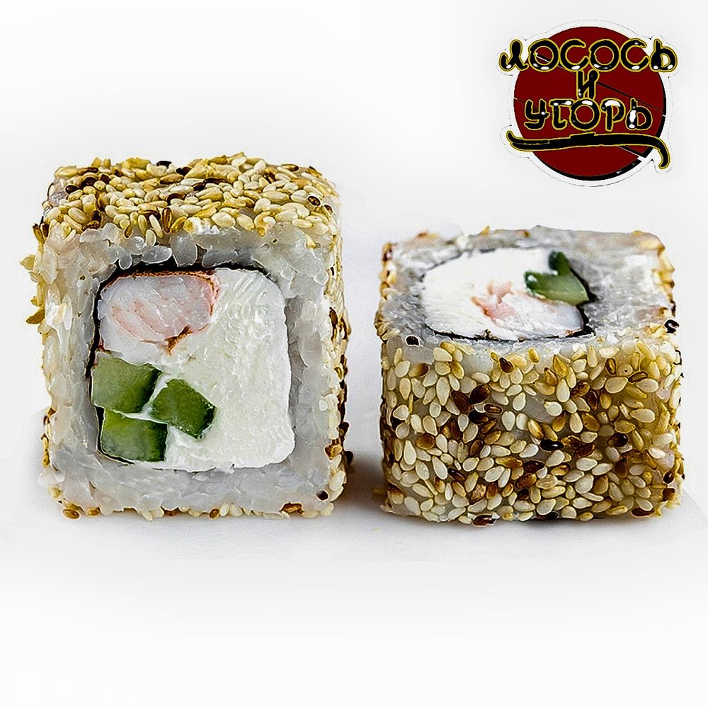 Рис, нори, сливочный сыр, тигровая креветка, огурец, кунжут
