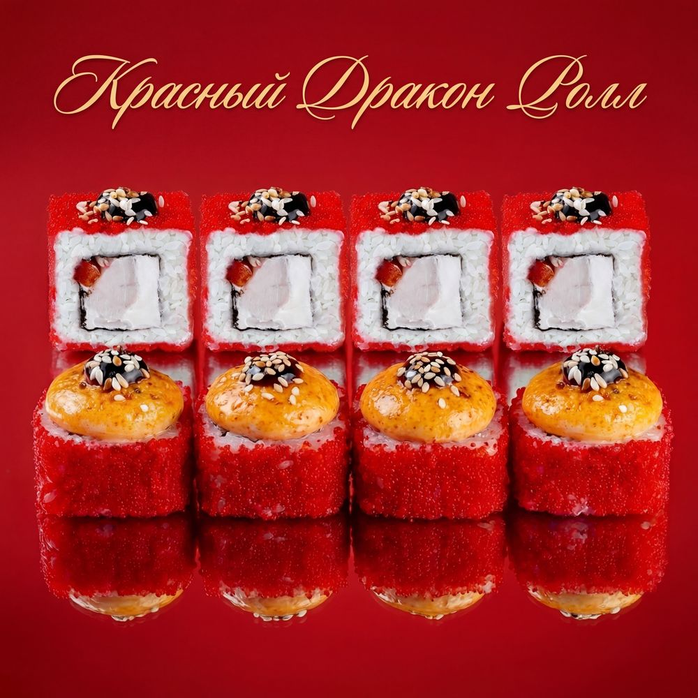 Запеченный рол Рис, нори, сливочный сыр, курица, перец, масаго, спайси соус