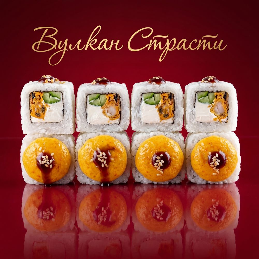 Запеченный ролл Рис, нори, сливочный сыр, мидии, зелёный лук,спайси соус