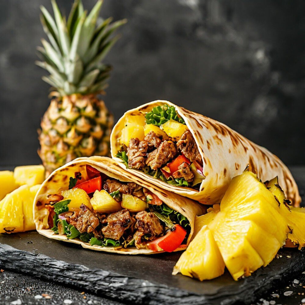 Курочка, морковь по-корейски, ананасы, капуста, тостерный сыр.